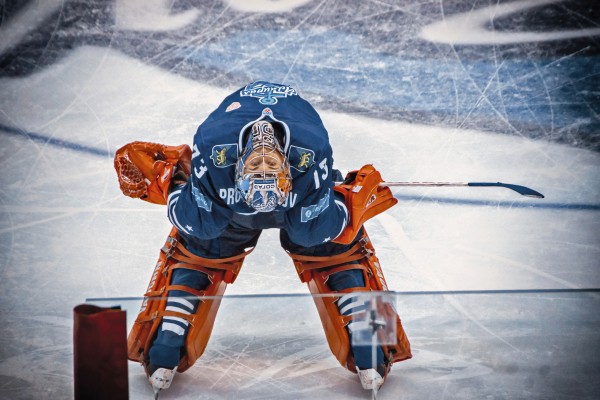 Вратарь хоккейного клуба «Адмирал» Илья Проскуряков на раскатке перед матчем